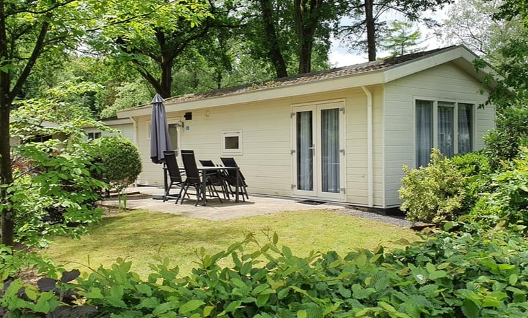 Looking to rent a chalet on the Veluwe? This comfortable and stylish holiday chalet is located in the heart of nature at EuroParcs De Hooge Veluwe, one of the most beautiful locations for a holiday in the Netherlands. The park offers excellent facilities including a restaurant, bar, indoor and outdoor swimming pool, and laundry facilities, ensuring a relaxing and carefree stay.