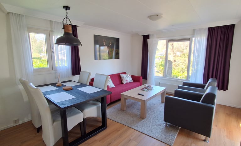 Enjoy a relaxing stay in this modern and comfortable chalet surrounded by beautiful nature. The chalet is stylishly furnished and fully equipped, offering a bright living area, open kitchen, 2 cozy bedrooms, and a private outdoor space to unwind.